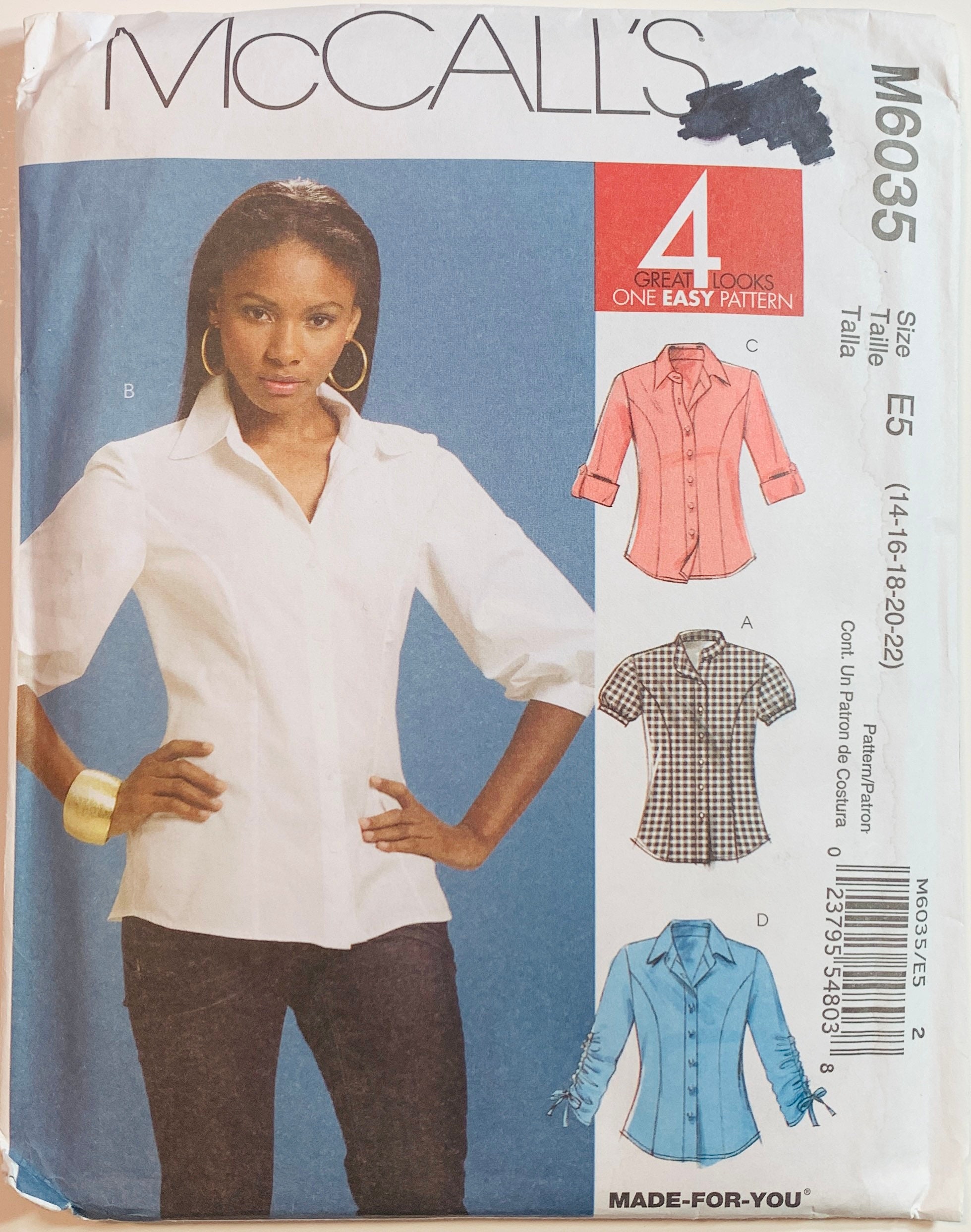 Vogue Sewing Pattern Princess Seam Shirt 16 22 Plus Button Front Long Short Sleeve 8598